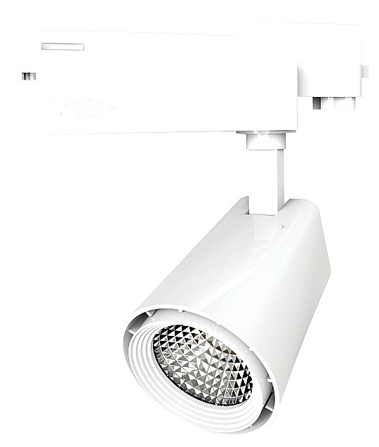 LED-3-Phasenstrahler "Galaxy" rotierbar 360° horizontal und 90° vertikal. Zur professionellen Raum- und Objektbeleuchtung mit hoher Lumenzahl. COB_Strahler mit optional wechselbaren 24°/40° und 60° Spiegelreflektoren. Exzellentes Licht mit sehr hoher Energieeffizienz: 150lm/W und CRI95 - Gehäusefarbe weiß.