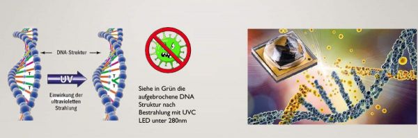 UVC Licht: Zerstört die DNA des Virus, Bakterien und andere durch LED UVC Licht (Wellenlänge 275nm)