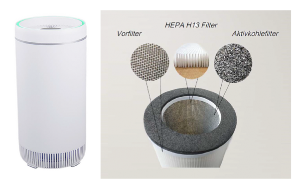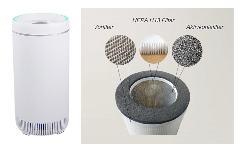 HEPA H13 Filter gegen Allergene, Aerosole, schädliche Chemikalien, Pollen, 0,3µm Partikel.